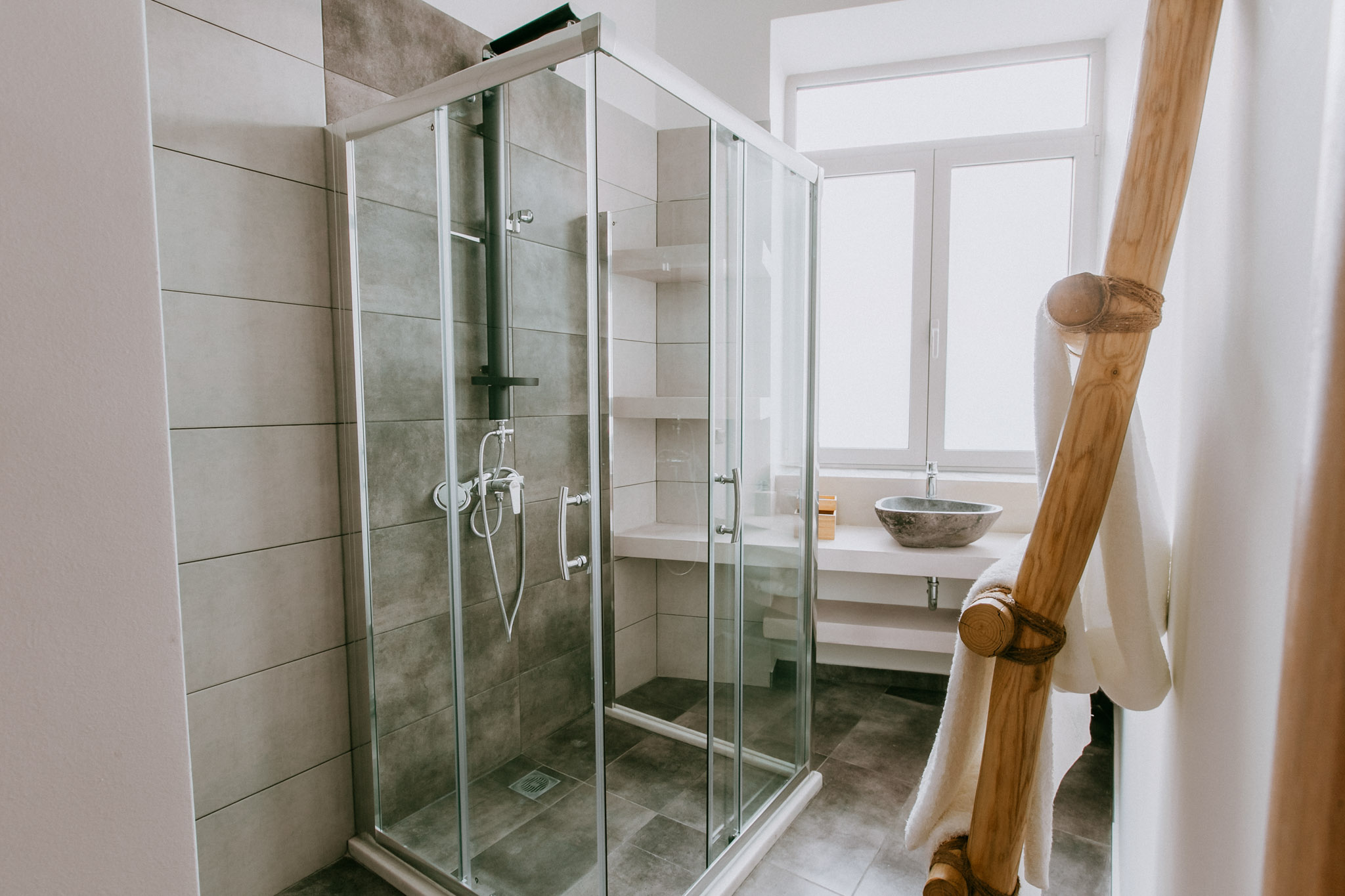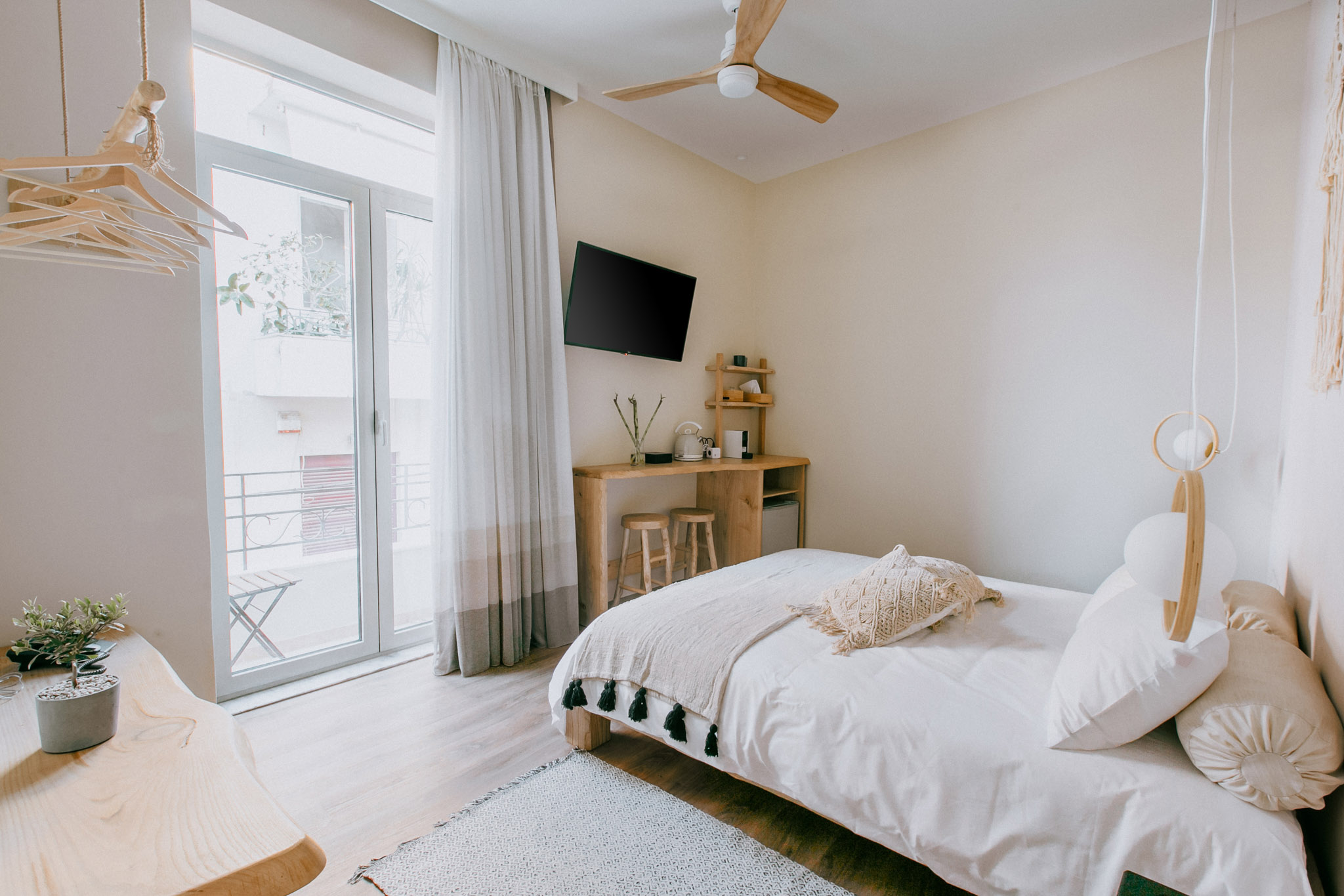 Carefree, as her name suggests, Allegra is fond of light and joy. This 2nd floor, 27-sq. m. room is brimming with natural light from the balcony and wind from the ceiling fan, holding to Ederlezi Boutique Hotel’s standards by offering all the amenities, the stylish simplicity and the details you can expect from it.